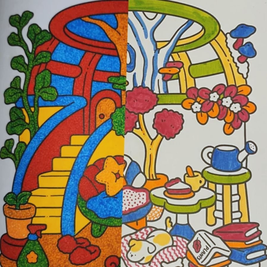 You and your partner can color the exact same picture and reveal your results at the end. Starting with identical lines and blank spaces, you’ll each bring your own creativity, mood, and personality into the design. It’s a playful way to see how your personalities show up through color choices, shading styles, and the tiny details you focus on—cue the “why did you make the sky purple?” conversations.