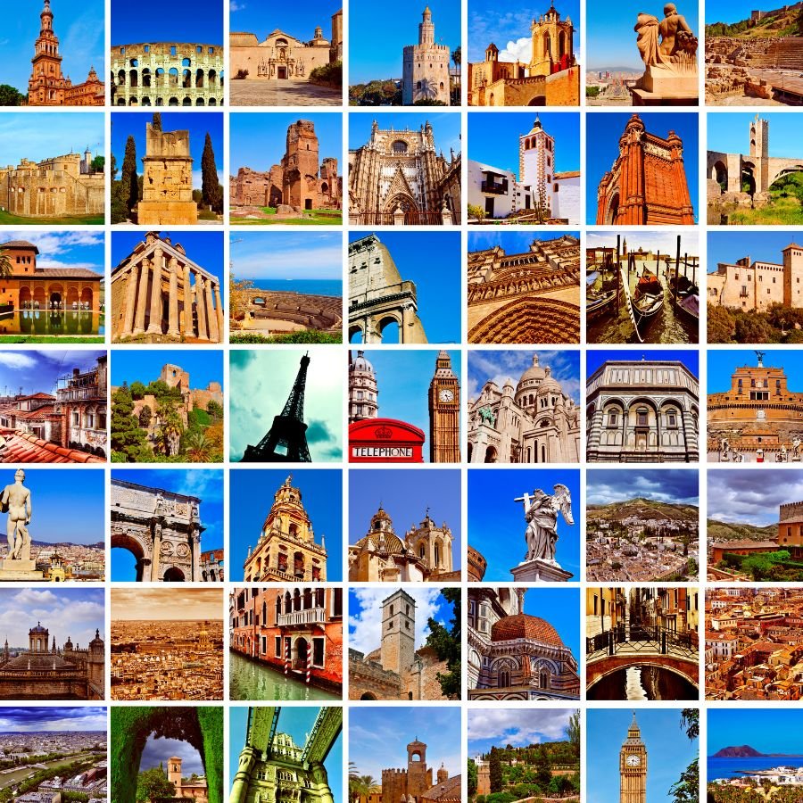 🗼 famous landmarks like the Eiffel Tower or Taj Mahal
